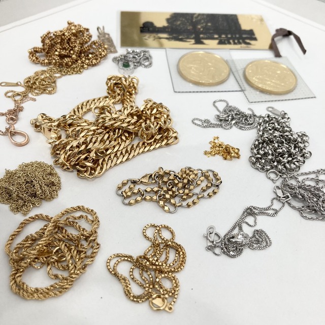 当店では、付属の宝石やデザイン性、ブランドジュエリーなど、本来であれば査定対象にならない部分を含めた「製品としての価値」を上乗せして査定いたします。ゴールドバーやプラチナバーはもちろんのこと、金縁メガネや金歯も高価査定の対象です。「金を高く売りたい」そんなお客様のお声に買取大吉 コープぐんまみさと店がお応えできるように尽力いたします。