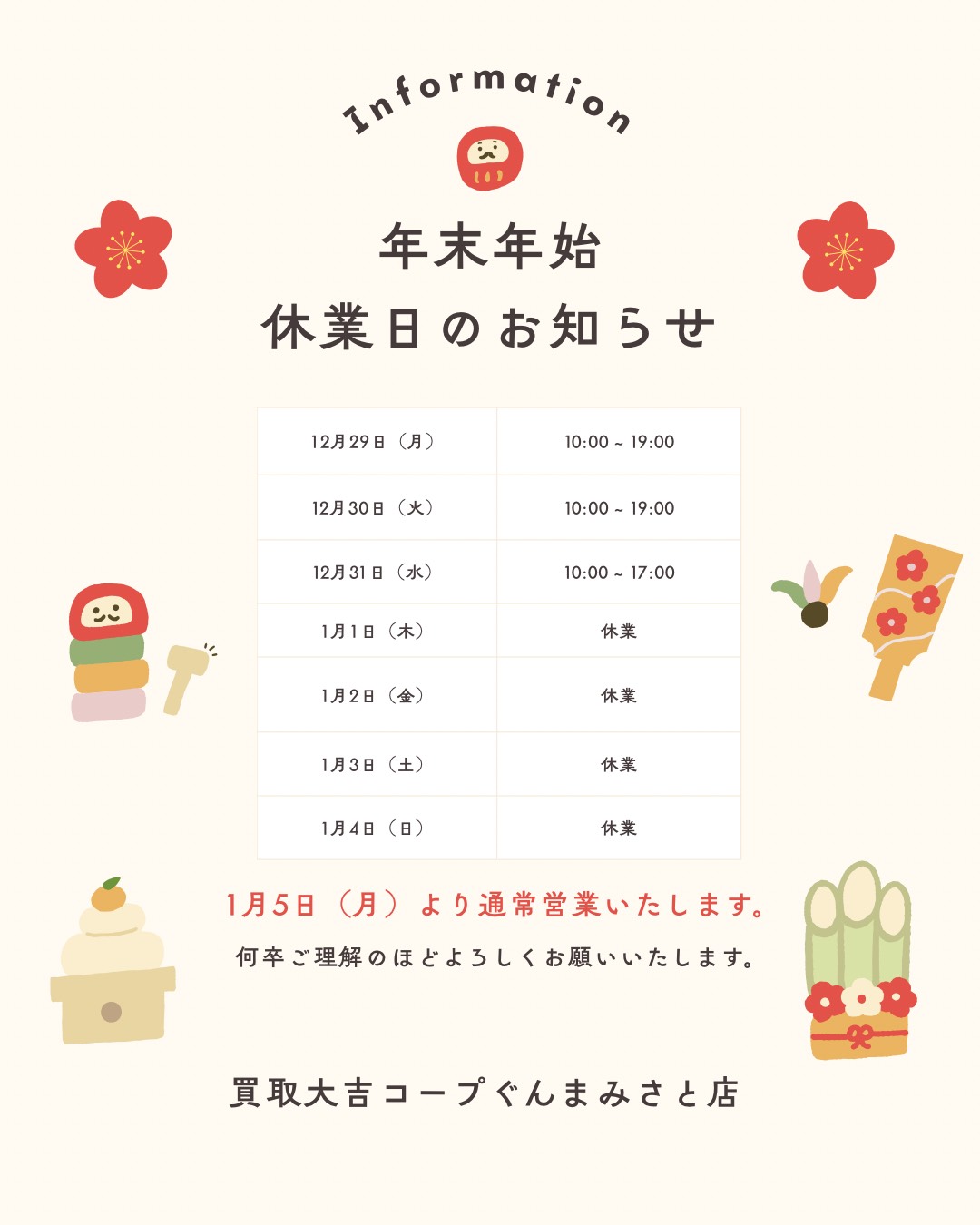 【🎍年末年始 休業日のお知らせ🎍】